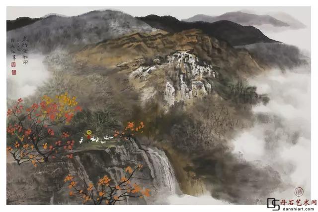 画家绘画风格的形成有两个元素尤为重要。一是生活的积淀。二是对艺术的追求。生活是基础,追求是目标。九江从我这里学到的,亦主要是艺术的理念,及如何用画笔抒发他对太行山的理解和诠释。绘画本身依靠生活的积淀,生活的积淀可以赋予画家艺术上的灵感。生活在大山中的九江,汲取了自然的养分,在艺术表现上大胆探索,不断完善,在他的画中,展现了大空间、大气度,追求画面的真实感和用笔的扎实度,把中国画的笔墨技巧与油画的色彩、光影、肌理的表现方法相融汇,形成了自己的绘画风格。
